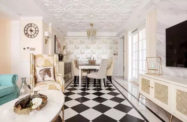 这个装饰壁挂造型在美式设计中经常被采用,摆件的原则就是通过环境显得耀眼,同时反过来可以更好的衬托环境。