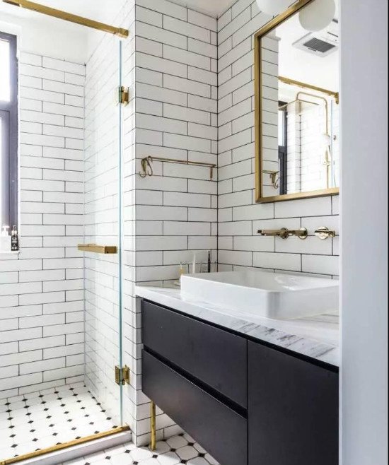 在色彩风格上,从墙面、柜体再到地面的黑白花砖,整体色调整齐划一,又通过不同的拼接方式,让空间变得生动起来!