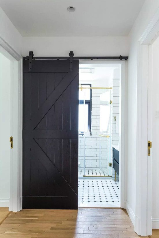 往卧室过渡,从这边往里走就是主卧、女儿房、公卫了!公卫选择谷仓门与厨房遥相呼应。